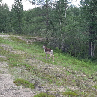 Il tempo si fa molto nuvoloso, ma non piove per fortuna. I chilometri persi il giorno prima, si recuperano il giorno dopo, assieme alle renne che rallegrano la giornata di corsa: "adesso mancano una trentina di chilometri, ho trovato un gruppo di renne che stanno brucando, si vede il passaggio tra la taiga e la tundra, pochi alberi e cespugli; le barriere, per impedire che le renne invadano la strada. Oggi 150 chilometri, una bella tiratina, con 750 metri di dislivello, per recuperare il rallentamento della pioggia di ieri. Il tempo finalmente si è messo al bello, ma iniziano i dislivelli. Va sempre tutto bene e anche sta sera ho chiesto una cabina: 35 euro con il lettino, non devo togliere la tenda, c'è la cucinetta ... non mi sembra neanche vero!"