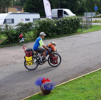 La meta si avvicina, la fatica ogni tanto si fa sentire e gli incontri, la condivisione, rendono la corsa più leggera: "Oggi ho conosciuto una coppia di Francesi di Avignone e poi un ragazzo tedesco di Lubecca che stava tornando da Capo Nord. Abbiamo fatto 102 chilometri, con 800 metri di dislivello. Molto probabilmente con i Francesi Marcel e Michelle arriveremo a Capo Nord insieme. Li ho ritrovati, un paio di giorni fa li ho superati." Ancora saliscendi che stancano le gambe, paesaggio sempre più interessante, fino al vecchio confine tra Finlandia e Norvegia. Manca proprio poco: "meno 129 chilometri a Capo Nord, il campeggio si trova 12 chilometri pima, dormiremo in campeggio e dopodomani arrivo aĺla meta. Domani invece il passaggio del famoso e difficile tunnel. Oggi il panorama era proprio bello, ci siamo fermati e ci siamo riposati, insieme con Marcel e Michel, c'è stato parecchio vento contro".